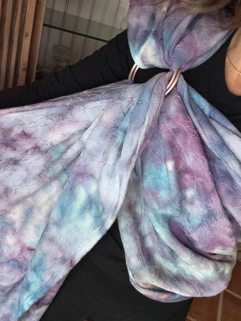 This is blend of 70% cotton 30% bamboo jacquard. The pattern is a botanical, delicate vine with small leaves. It has an organic, nature inspired flow. It is soft and snuggly while still being very supportive and breathable.