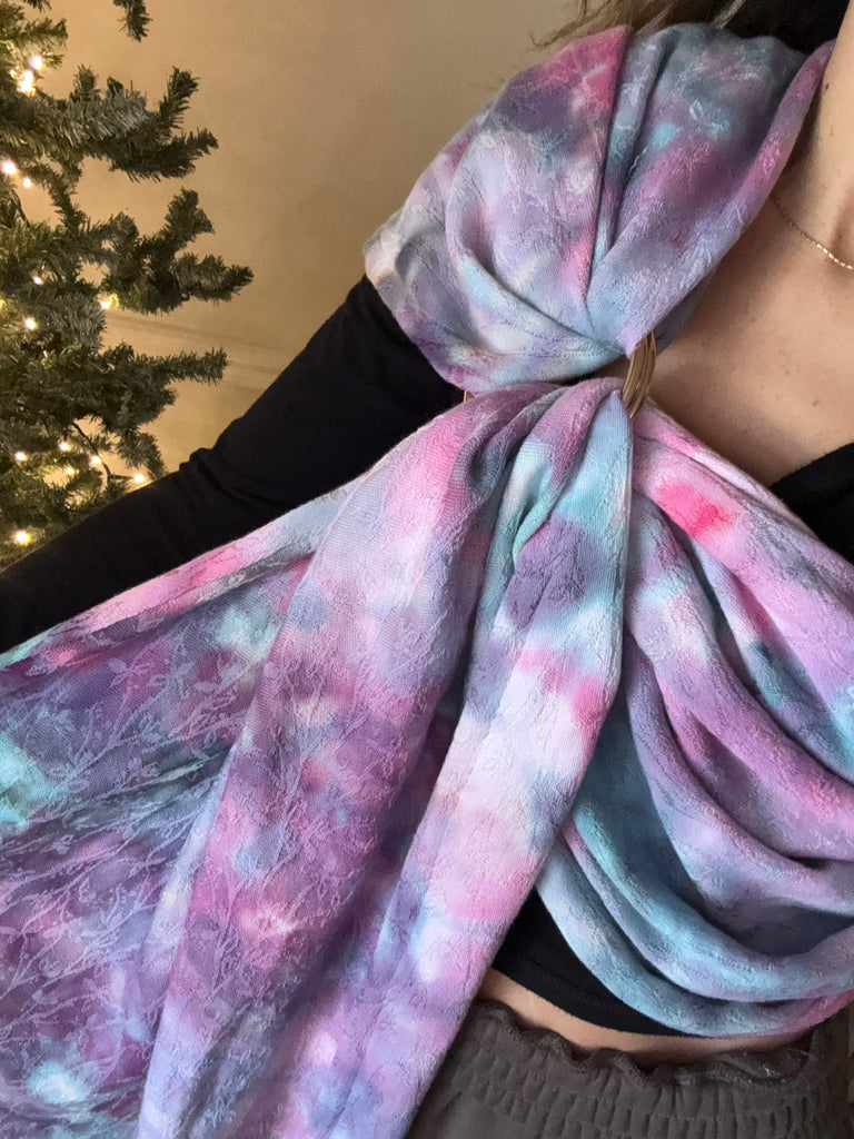 This is blend of 70% cotton 30% bamboo jacquard. The pattern is a botanical, delicate vine with small leaves. It has an organic, nature inspired flow. It is soft and snuggly while still being very supportive and breathable.