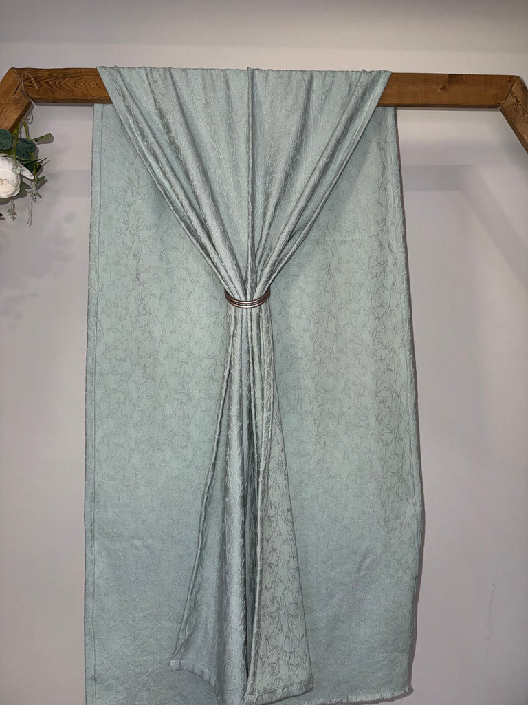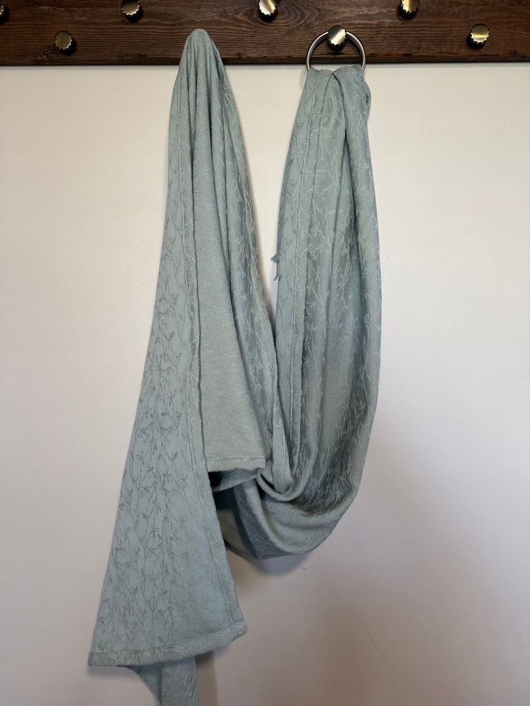 This is blend of 70% cotton 30% bamboo jacquard. The pattern is a botanical, delicate vine with small leaves. It has an organic, nature inspired flow. It is soft and snuggly while still being very supportive and breathable.