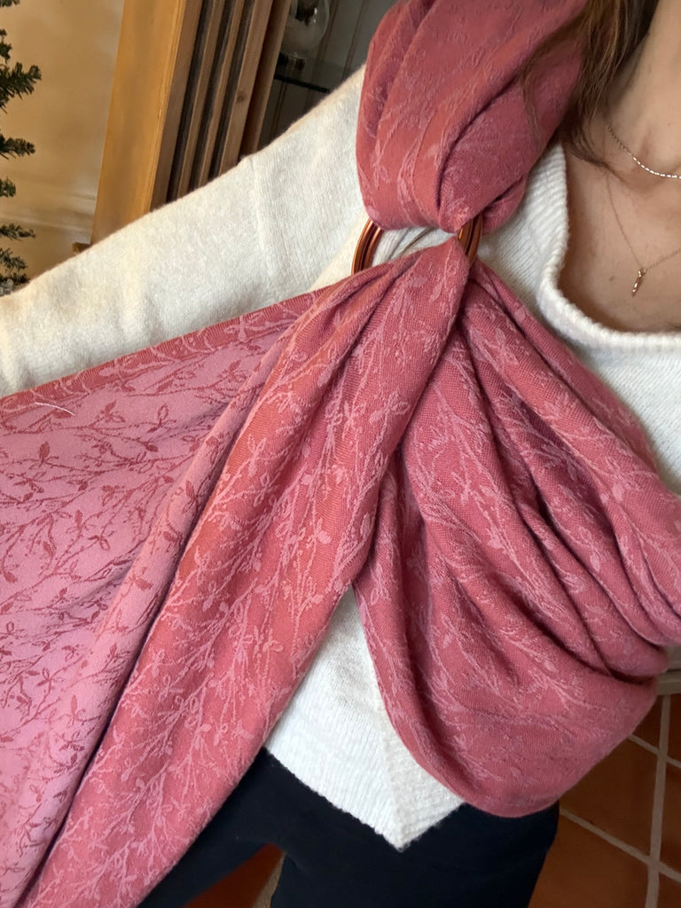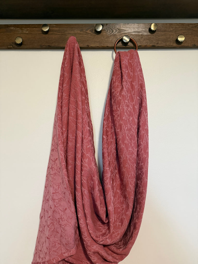 This is blend of 70% cotton 30% bamboo jacquard. The pattern is a botanical, delicate vine with small leaves. It has an organic, nature inspired flow. It is soft and snuggly while still being very supportive and breathable.