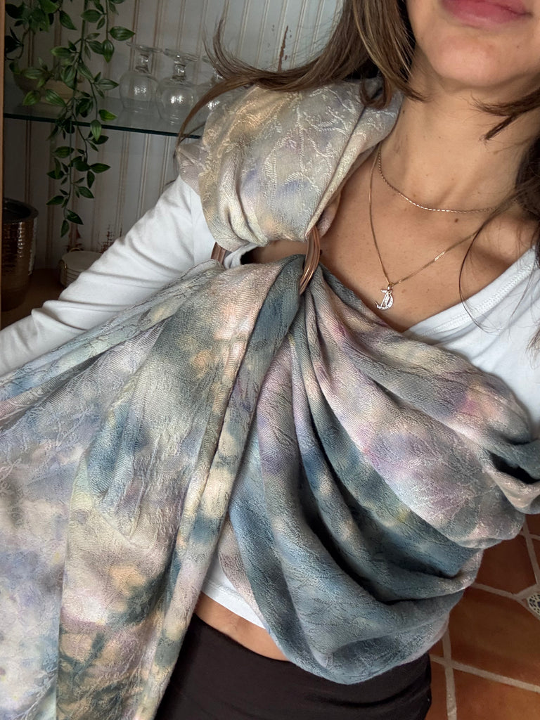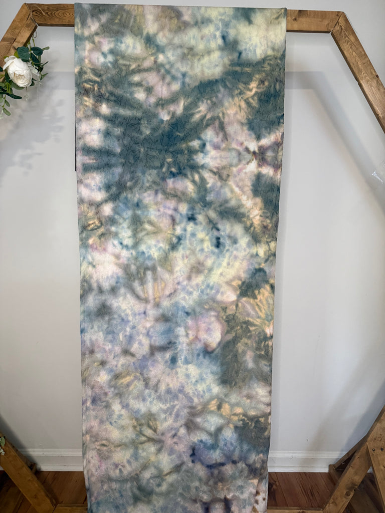 This is blend of 70% cotton 30% bamboo jacquard. The pattern is a botanical, delicate vine with small leaves. It has an organic, nature inspired flow. It is soft and snuggly while still being very supportive and breathable.