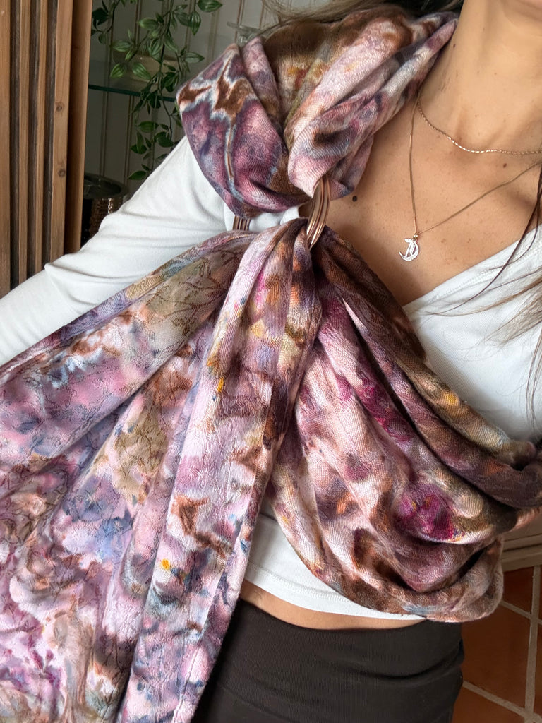 This is blend of 70% cotton 30% bamboo jacquard. The pattern is a botanical, delicate vine with small leaves. It has an organic, nature inspired flow. It is soft and snuggly while still being very supportive and breathable.