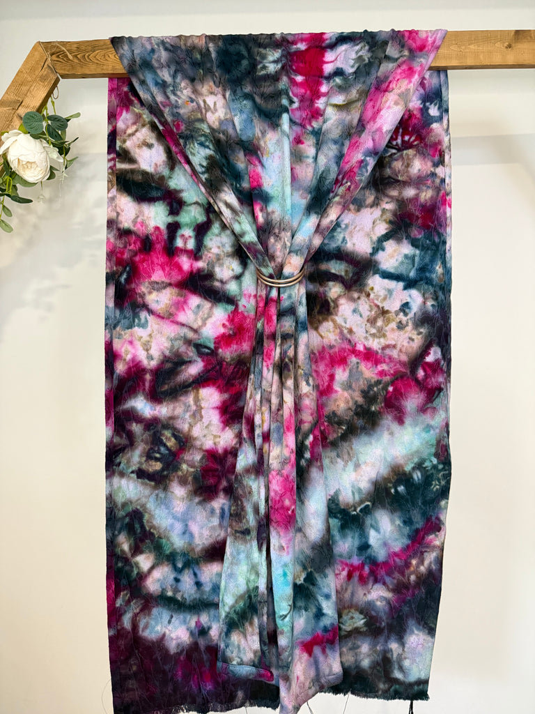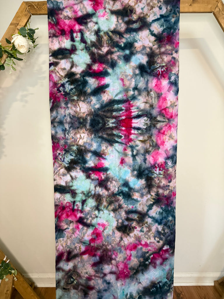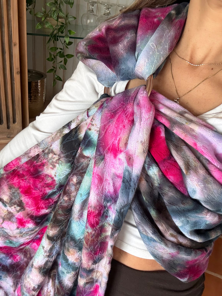 This is blend of 70% cotton 30% bamboo jacquard. The pattern is a botanical, delicate vine with small leaves. It has an organic, nature inspired flow. It is soft and snuggly while still being very supportive and breathable.