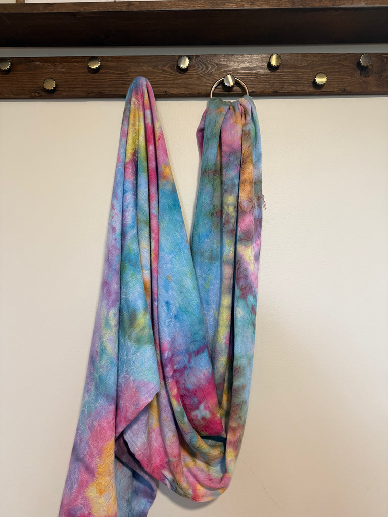 This is blend of 70% cotton 30% bamboo jacquard. The pattern is a botanical, delicate vine with small leaves. It has an organic, nature inspired flow. It is soft and snuggly while still being very supportive and breathable.