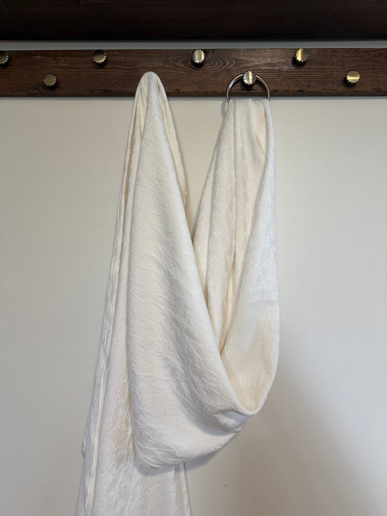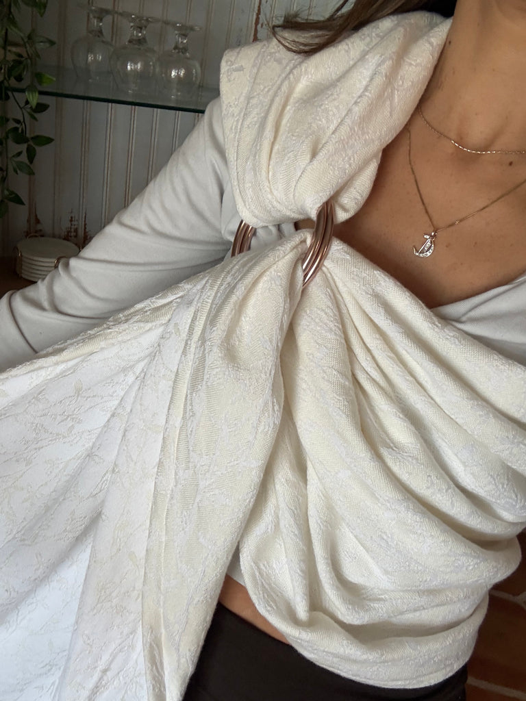 This is blend of 70% cotton 30% bamboo jacquard. The pattern is a botanical, delicate vine with small leaves. It has an organic, nature inspired flow. It is soft and snuggly while still being very supportive and breathable.