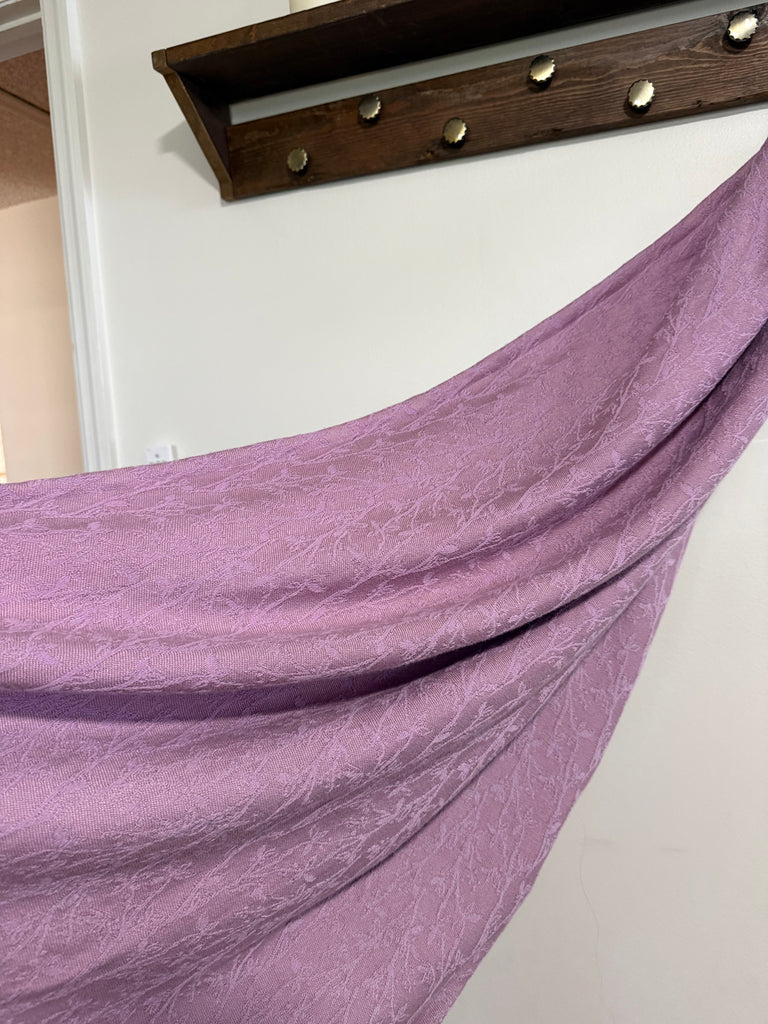 This is blend of 70% cotton 30% bamboo jacquard. The pattern is a botanical, delicate vine with small leaves. It has an organic, nature inspired flow. It is soft and snuggly while still being very supportive and breathable.