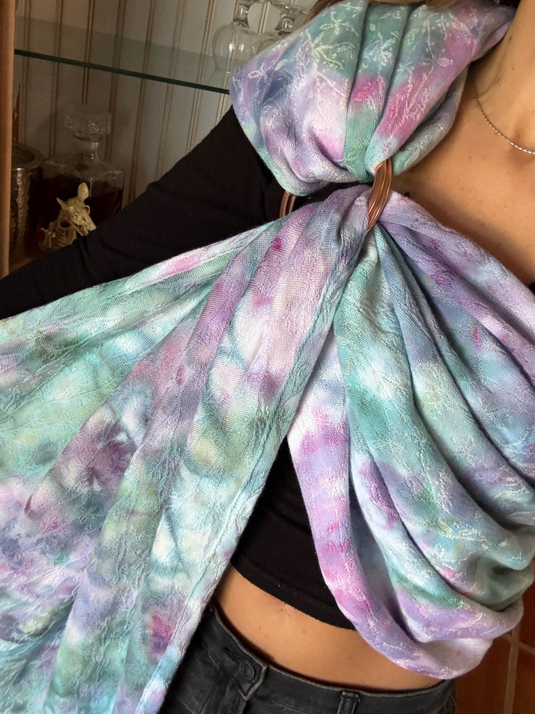This is blend of 70% cotton 30% bamboo jacquard. The pattern is a botanical, delicate vine with small leaves. It has an organic, nature inspired flow. It is soft and snuggly while still being very supportive and breathable.